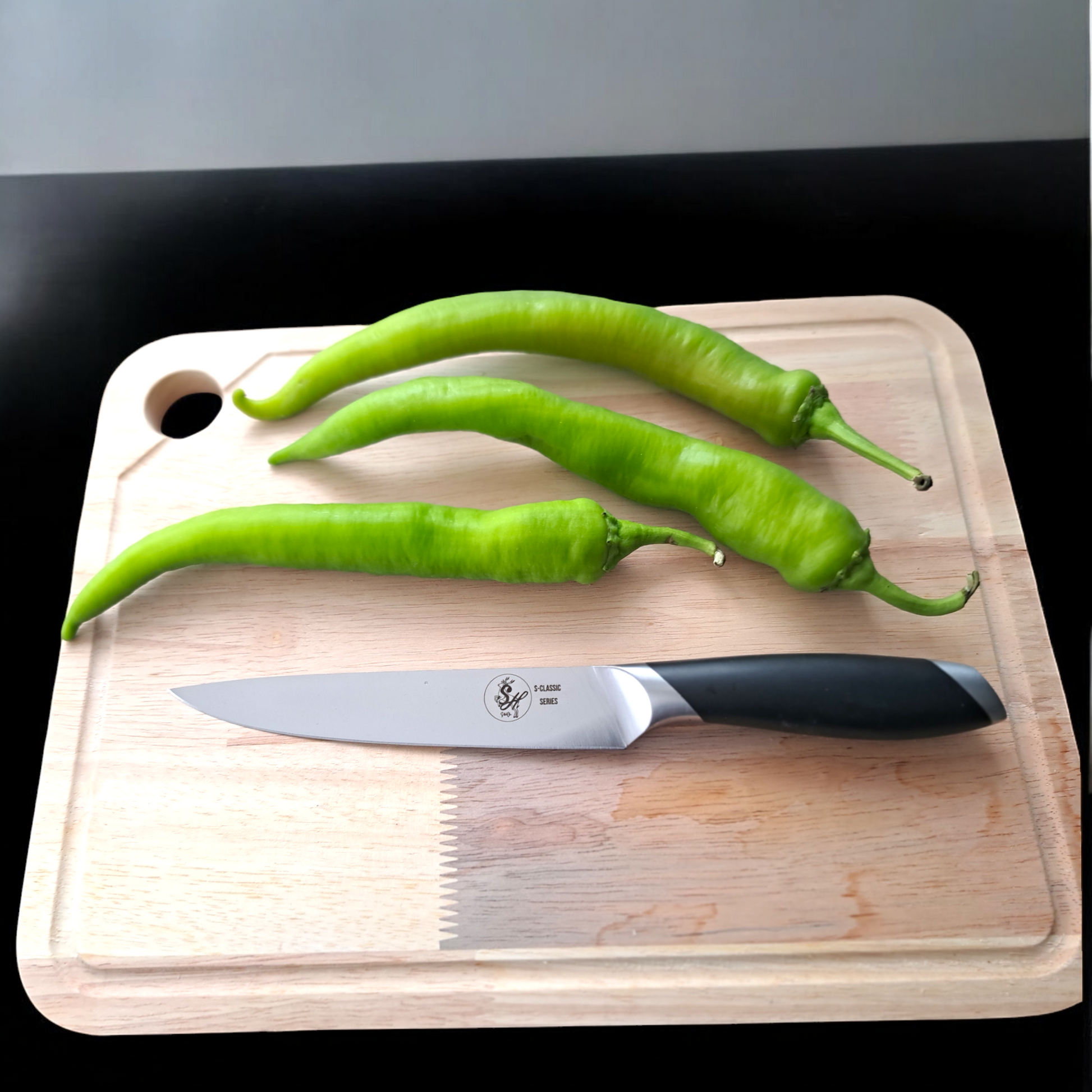 Dieses Kochmesser ist Teil der S-HubOla S-Classic Serie, die kontinuierlich um weitere exklusive Produkte erweitert wird. Jedes Produkt in dieser Serie bietet herausragende Qualität und einzigartiges Design, das Profis wie Hobbyköche gleichermaßen begeistert.