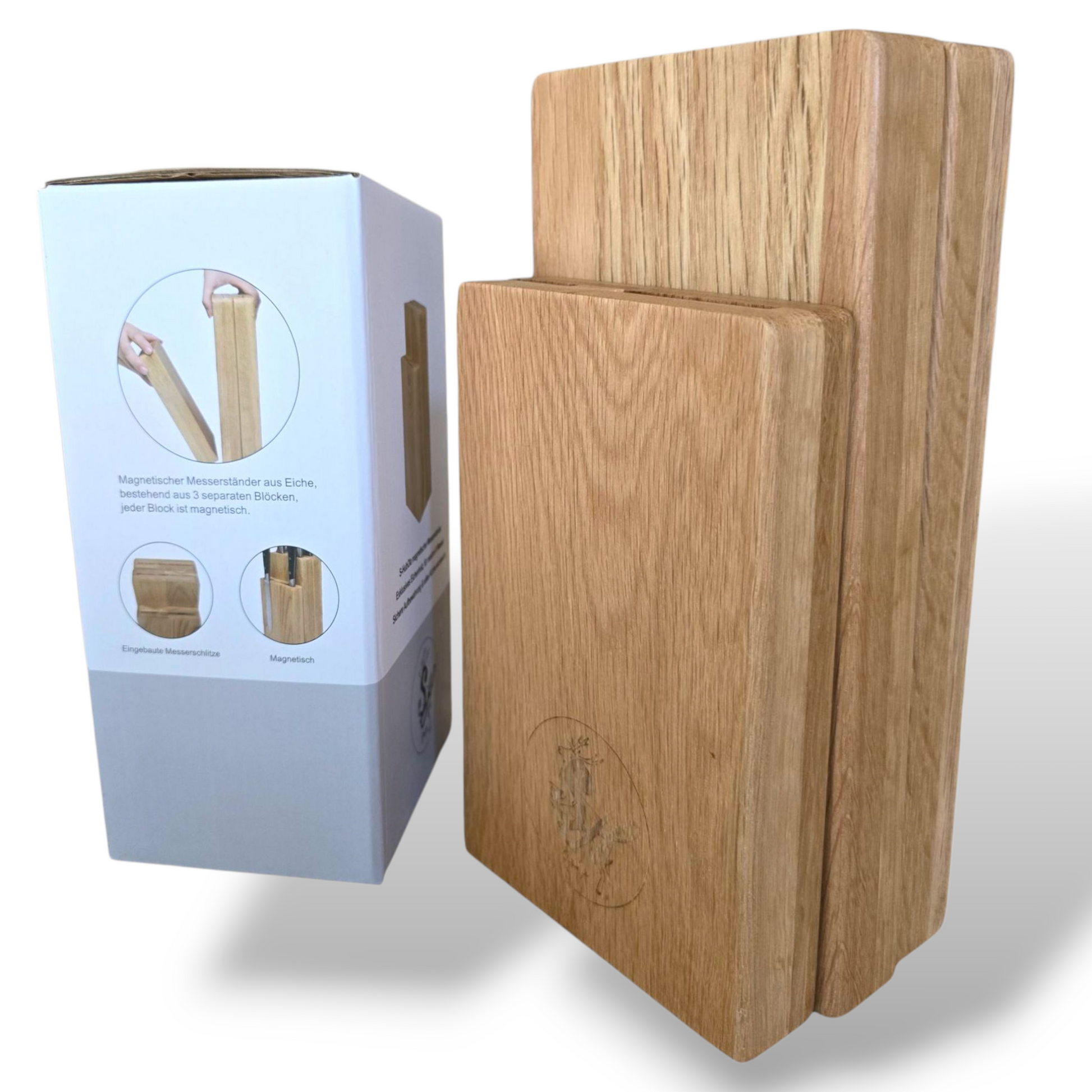 S-HubOla Magnetischer Messerständer aus Eichenholz – 3-teilig,frei kombinierbar, modular